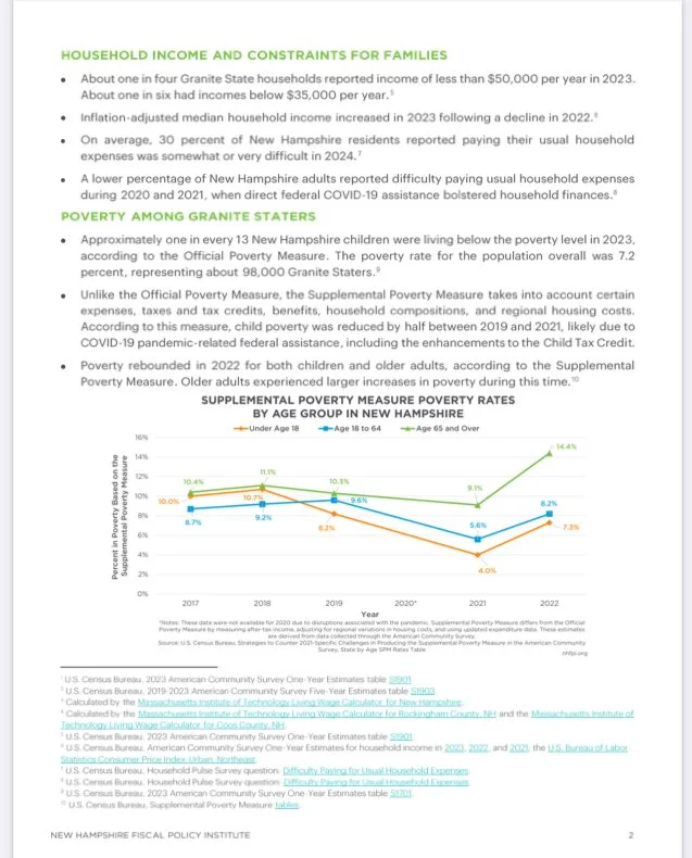 This fact sheet above provides a snapshot of financial hardships facing families in New Hampshire, including rising costs of living and varying rates of poverty.