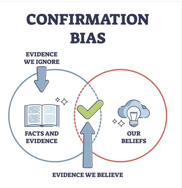 “… Confirmation Bias is the tendency to look for information that supports, rather than rejects, one’s preconceptions, typically by interpreting evidence to confirm existing beliefs while rejecting or ignoring any conflicting data (American Psychological Association). … Confirmation bias in psychology is the tendency to favor information that confirms existing beliefs or values. People exhibiting this bias are likely to seek out, interpret, remember, and give more weight to evidence that supports their views, while ignoring, dismissing, or undervaluing the relevance of evidence that contradicts them. …” SOURCE